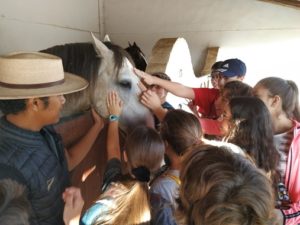 Le matin, nos élèves découvrirent le quotidien des cavaliers et de leurs chevaux dans la toute nouvelle finca de la célèbre réjonéadora Léa Vicens. Ils assistèrent à une démonstration hippique menée de main de maître par Léa, originaire de Nîmes (France). Tout au long de la visite des écuries, elle expliqua à nos élèves, accompagnée de son assistant Arnaud, français lui aussi, les techniques de soins et de dressage.