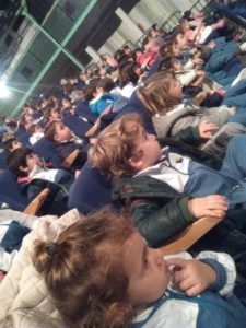 Nous attendions ce jour depuis longtemps et malgré le mauvais temps, nous avons quand même pu faire notre première excursion. Nos parents étaient un peu angoissés à l’ idée de nous laisser partir seuls dans ce grand autobus mais finalement tout s’est très bien passé!.