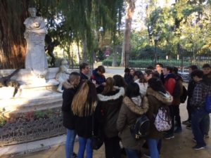 Los alumnos de 4º de ESO disfrutaron el viernes 1 de diciembre de una actividad interdisciplinar del departamento de Lengua castellana y Literatura y el departamento de Historia. Se realizó una Ruta literaria por Sevilla que los acercó a las huellas que Gustavo Adolfo Bécquer dejó en la ciudad. El paseo estuvo acompañado por la historia literaria e histórica que acompañaba a cada edificio o monumento relacionado con este autor romántico.
